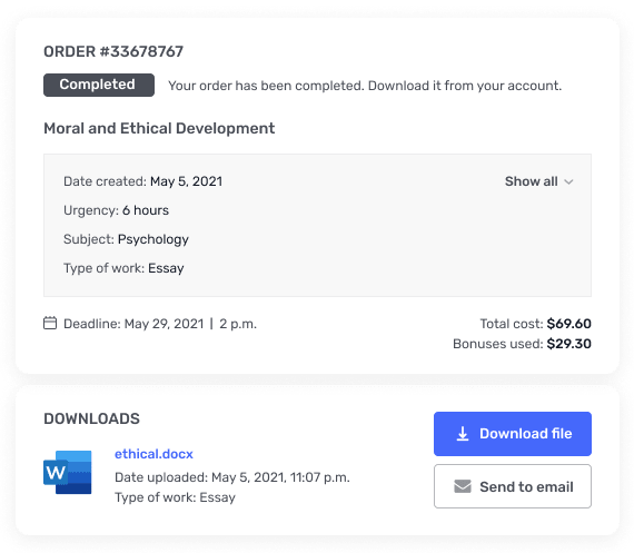 Your right to privacy is something we don’t take lightly. That's why we offer guaranteed confidential service. You can have complete faith that whatever sort of paper writing help you need